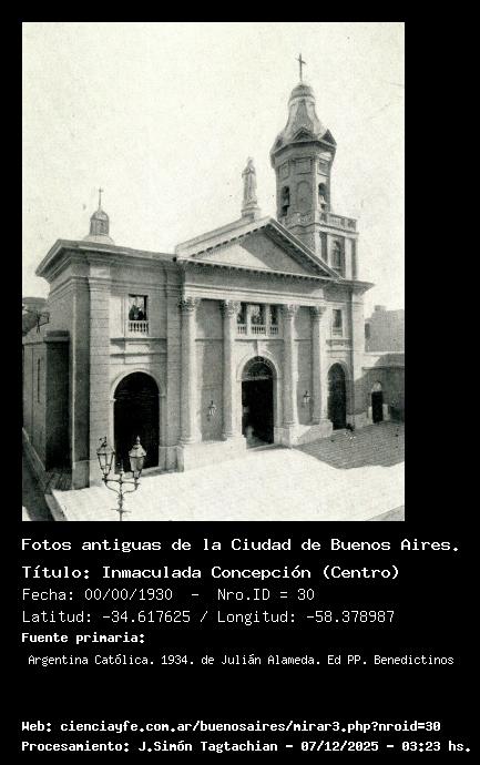 Inmaculada Concepción (Centro) - Fecha: 00/00/1930 - [Id: 30] Fecha_aproximada Fuente:Argentina Católica. 1934. de Julián Alameda. Ed PP. Benedictinos