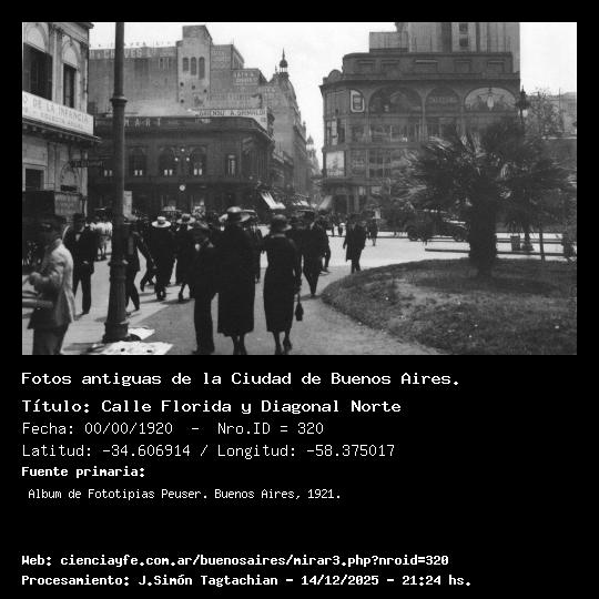 Calle Florida y Diagonal Norte - Fecha: 00/00/1920 - [Id: 320] Fuente:Album de Fototipias Peuser. Buenos Aires, 1921.