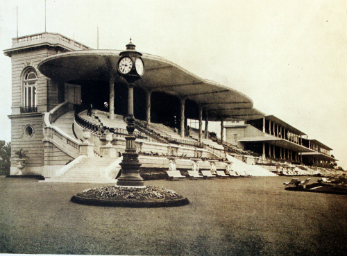 Hipódromo de Palermo. Tribunas. - Fecha: 00/00/1910 - [Id: 487] Tribuna de la entrada principal. Fuente:La República Argentina en su primer centenario (1810-1910). Edición facisimilar, Colección Panunzi. Ed. Biblioteca Nacional 2010.