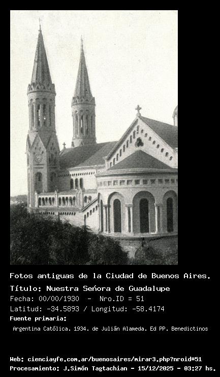 Nuestra Señora de Guadalupe - Fecha: 00/00/1930 - [Id: 51] Fecha_aproximada Fuente:Argentina Católica. 1934. de Julián Alameda. Ed PP. Benedictinos