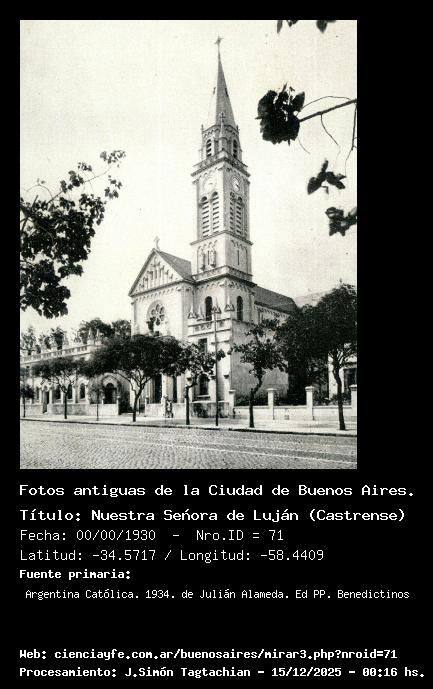 Nuestra Señora de Luján (Castrense) - Fecha: 00/00/1930 - [Id: 71] Fecha_aproximada Fuente:Argentina Católica. 1934. de Julián Alameda. Ed PP. Benedictinos