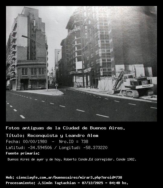 Reconquista y Leandro Alem - Fecha: 00/00/1980 - [Id: 738] Fuente:Buenos Aires de ayer y de hoy. Roberto Conde.Ed corregidor. Conde 1982.