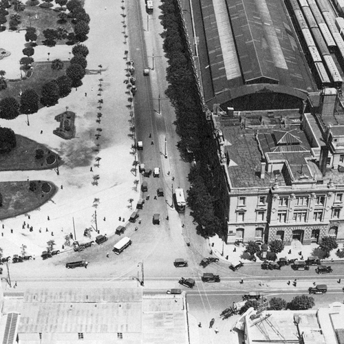 Plaza Once y Estación de Tren. - Fecha: 00/00/1925 - [Id: 832] Fuente:Fotografías de BROSZEIT-BORRA (circa 1925) de la Colección Familia Borra (tomadas de www.Histarmar.com.ar).