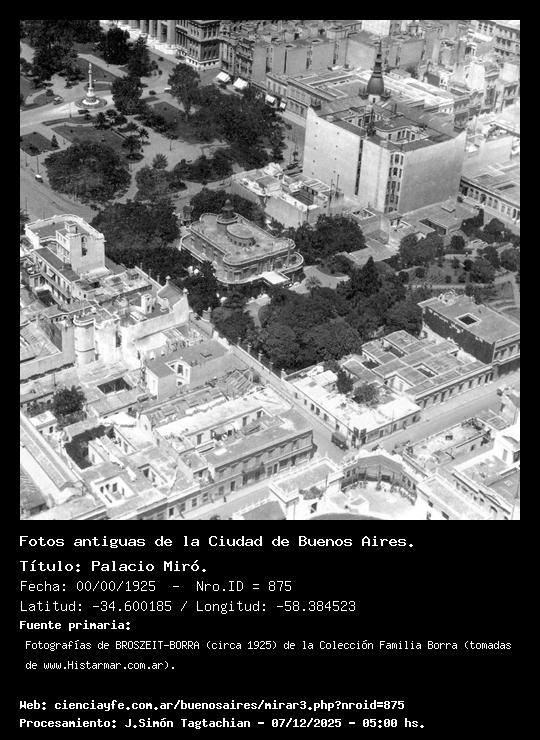Palacio Miró. - Fecha: 00/00/1925 - [Id: 875] Fuente:Fotografías de BROSZEIT-BORRA (circa 1925) de la Colección Familia Borra (tomadas de www.Histarmar.com.ar).