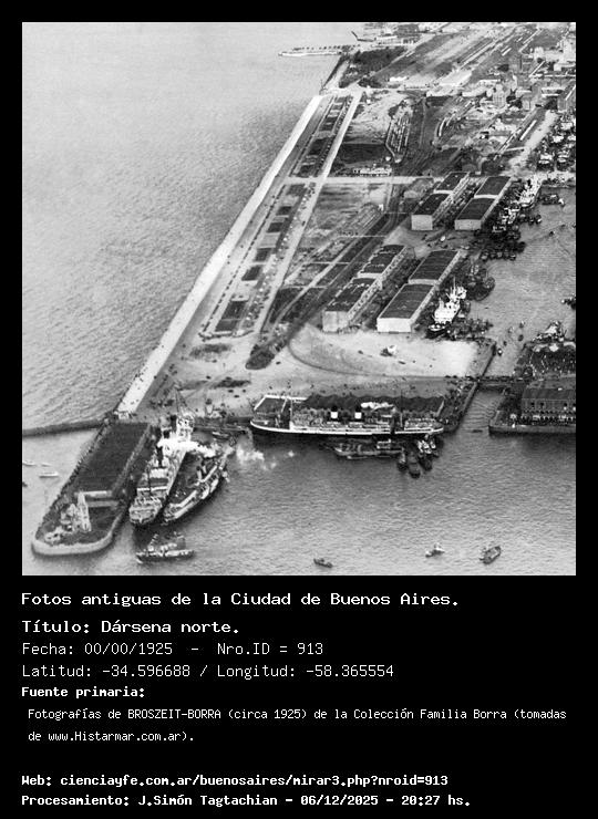 Dársena norte. - Fecha: 00/00/1925 - [Id: 913] Fuente:Fotografías de BROSZEIT-BORRA (circa 1925) de la Colección Familia Borra (tomadas de www.Histarmar.com.ar).