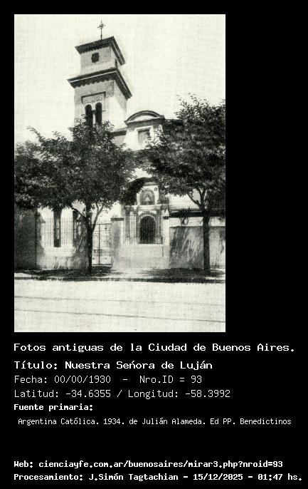 Nuestra Señora de Luján - Fecha: 00/00/1930 - [Id: 93] Fecha_aproximada Fuente:Argentina Católica. 1934. de Julián Alameda. Ed PP. Benedictinos