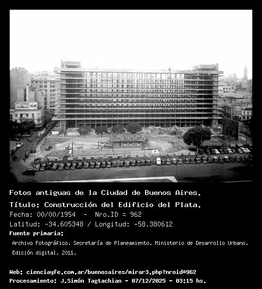 Construcción del Edificio del Plata. - Fecha: 00/00/1954 - [Id: 962] Fuente:Archivo Fotográfico. Secretaría de Planeamiento. Ministerio de Desarrollo Urbano. Edición digital, 2011.