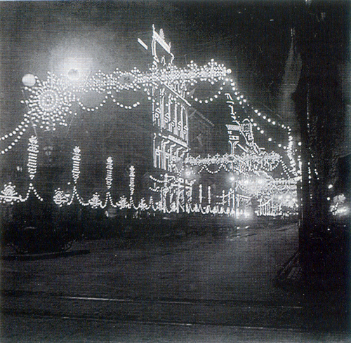 Avda de Mayo entre Chacabuco y Perú - 00/00/1910 - [Id: 618] Fuente:Memorias Urbanas. Luces del Centenario. Fotografías estereoscópicas y nocturnas de 1910. Instituto Histórico de la Ciudad de Buenos Aires. Palabras claves:La Prensa. Gath y Chaves. |