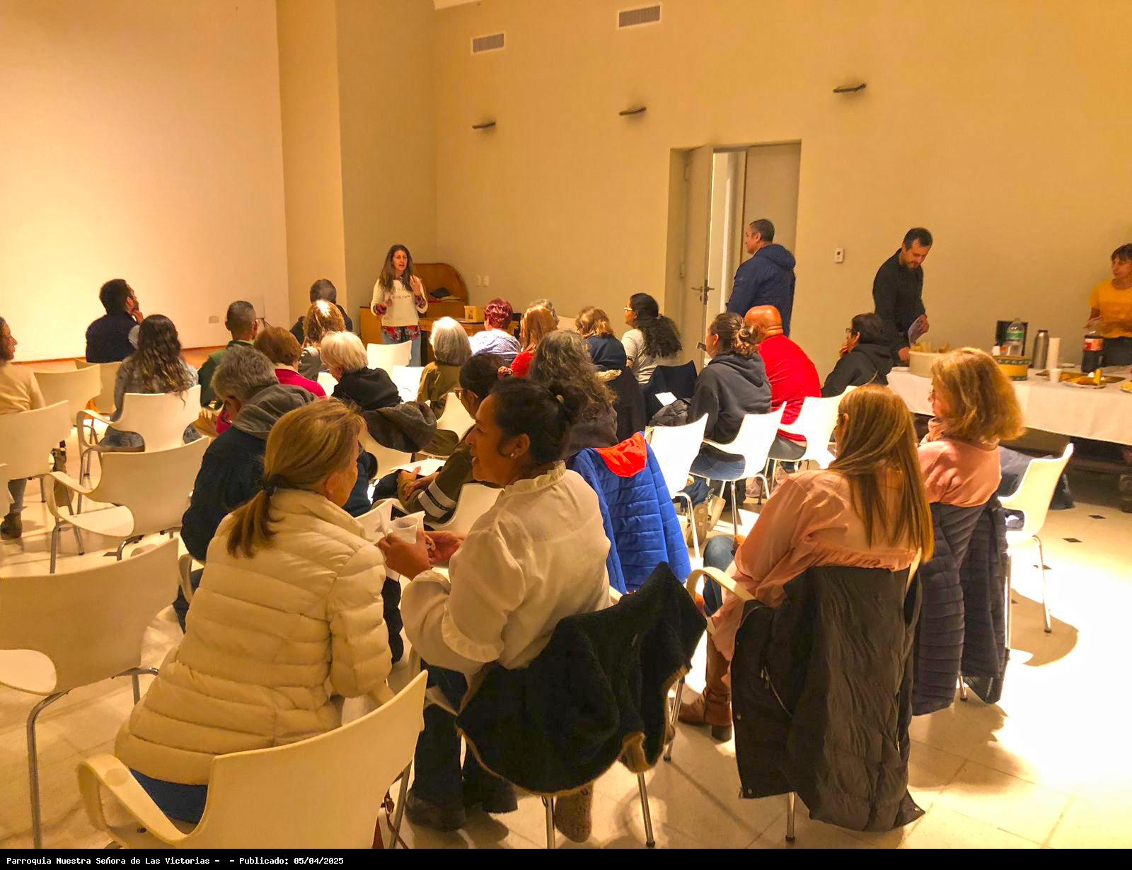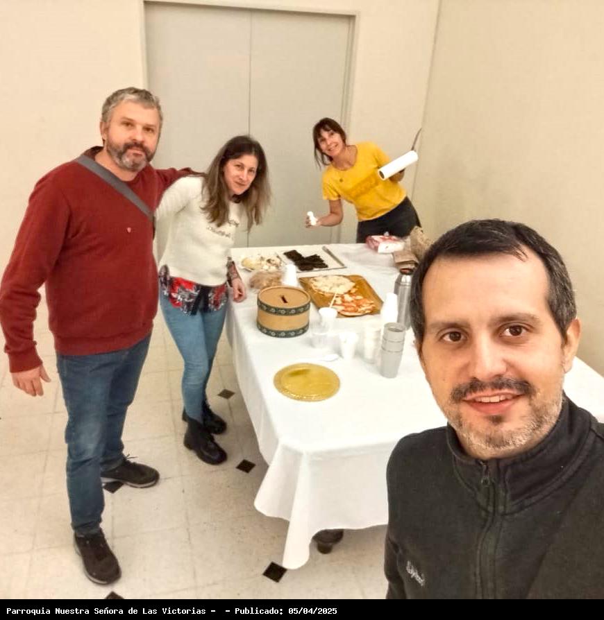 Aquí van las fotos del debate posterior y puesta en común. También compartimos algunas comidas (¡pizzas caseras!) y todo lo recaudado y donado se destinará a las obras en la Parroquia.