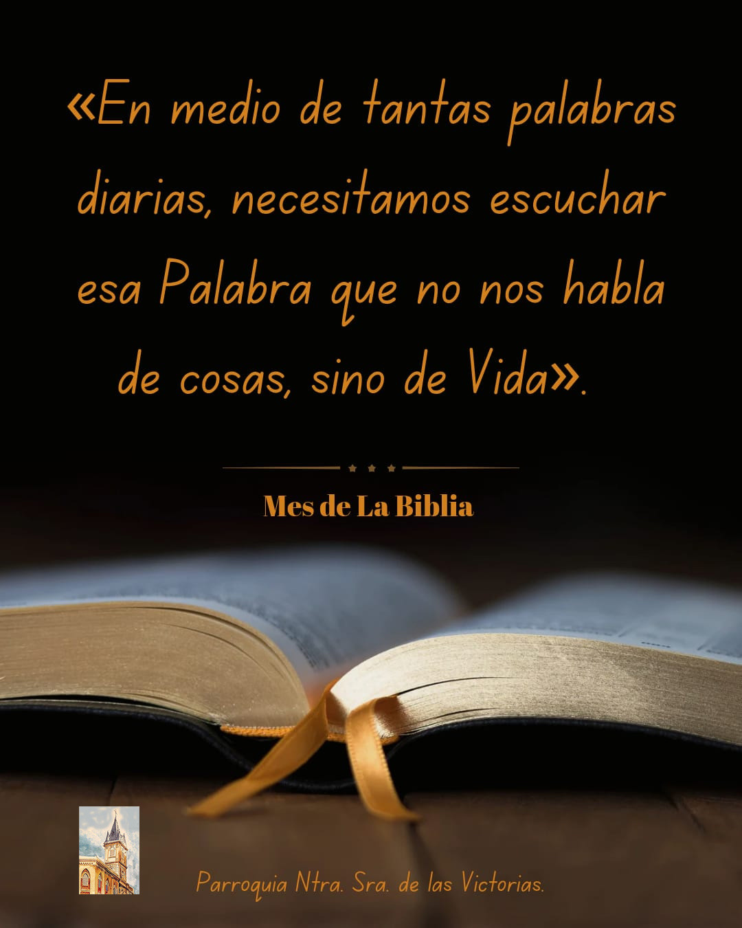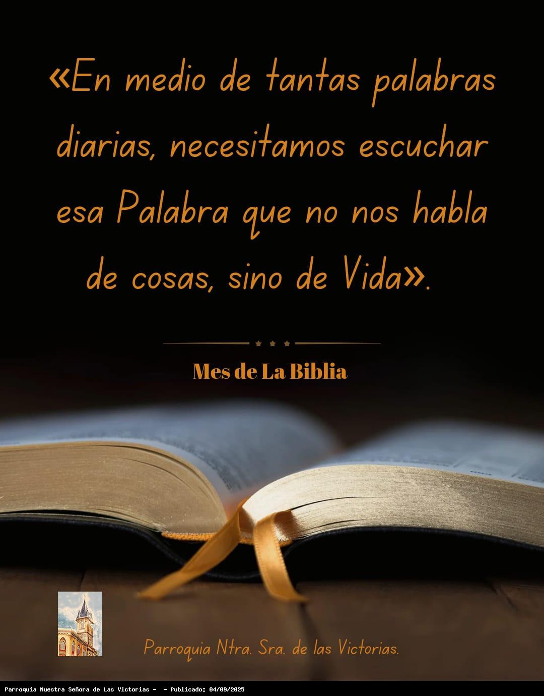 | «Leamos algún versículo de la Biblia cada día. Comencemos por el Evangelio; mantengámoslo abierto en casa, en la mesita de noche, llevémoslo en nuestro bolsillo, veámoslo en la pantalla del teléfono, dejemos que nos inspire diariamente. Descubriremos que Dios está cerca de nosotros, que ilumina nuestra oscuridad». (Papa Francisco). |