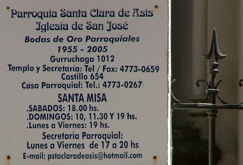 Santa Clara de Asís Gurruchaga 1012 - Ciudad de Buenos Aires. Parroquia Nro: 133 Er. canónica: 12/05/1955
