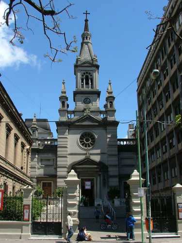 Datos históricos Su origen como capilla se remonta al año 1840 y se relaciona con el nombre de Juan Antonio Rodríguez, gallego de origen, llegado al Río de la Plata a finales del siglo XVIII Aquí se dedicó al comercio, llegando a redondear una apreciable fortuna. Ferviente cristiano, don Juan Antonio, por escritura del 28 de abril de 1840, fundó una capilla en los terrenos aledaños de la que fue, andando el tiempo, la Plaza Rodríguez Peña. Fallecido el fundador el 1 ° de julio de 1845, el patronato de la capilla pasó a su hijo Juan Andrés, que lo retuvo hasta 1881, año de su muerte. Luego por voluntad de doña Petronila Rodríguez, hija del fundador, el patronato fue de la Madre Benita Arias hasta 1894, en que a raíz de su fallecimiento se encargó de él la curia eclesiástica. Como capellanía fue atendida desde 1843 por sacerdotes del clero diocesano. Uno de sus rectores (el segundo) fue el tercer obispo y primer arzobispo de La Plata, Mons. Francisco Alberti, desde 1918 hasta octubre de 1921, desempeñando al mismo tiempo las funciones de obispo auxiliar y vicario general del arzobispado de Buenos Aires. El cuarto rector (1929-1957) fue el célebre Mons. Gustavo J. Franceschi. El Emmo. Card. Juan Carlos Aramburu la erigió en parroquia el 16 de marzo de 1986. Como primer párroco fue nombrado el Pbro. Víctor Enrique Pinto. Fuente: Guía de Sacerdotes y Parroquias de la Arquidiócesis de Buenos Aires. Año 2000. Editada por el Arzobispado de Buenos Aires. | |