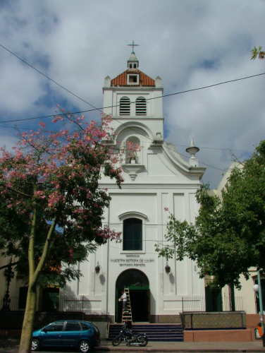 La imagen de la Virgen de Lujan fue trasladada en carreta de bueyes y en procesión desde dicha parroquia, el 1° de junio de 1930, hasta el templo acutal, todavía en construcción. La bendición del templo estuvo a cargo del entonces arzobispo de Buenos Aires, Mons. Santiago L. Copello, el 7 de septiembre de 1935.