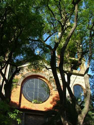 El 5 de octubre de 1920 Mons. Francisco Alberti bendijo la piedra fundamental de la iglesia y la abadía, las que terminadas fueron bendecidas por el abad de Silos el 22 de diciembre de 1925. La grandiosa iglesia abacial, de puro estilo románico, se debe al esfuerzo del abad Andrés Azcárate. En 1972 pasó a propiedad del Arzobispado por donación de los Padres Benedictinos, al trasladar su monasterio a la localidad de Jáuregui, con el propósito de dedicarse exclusivamente a la vida monacal.